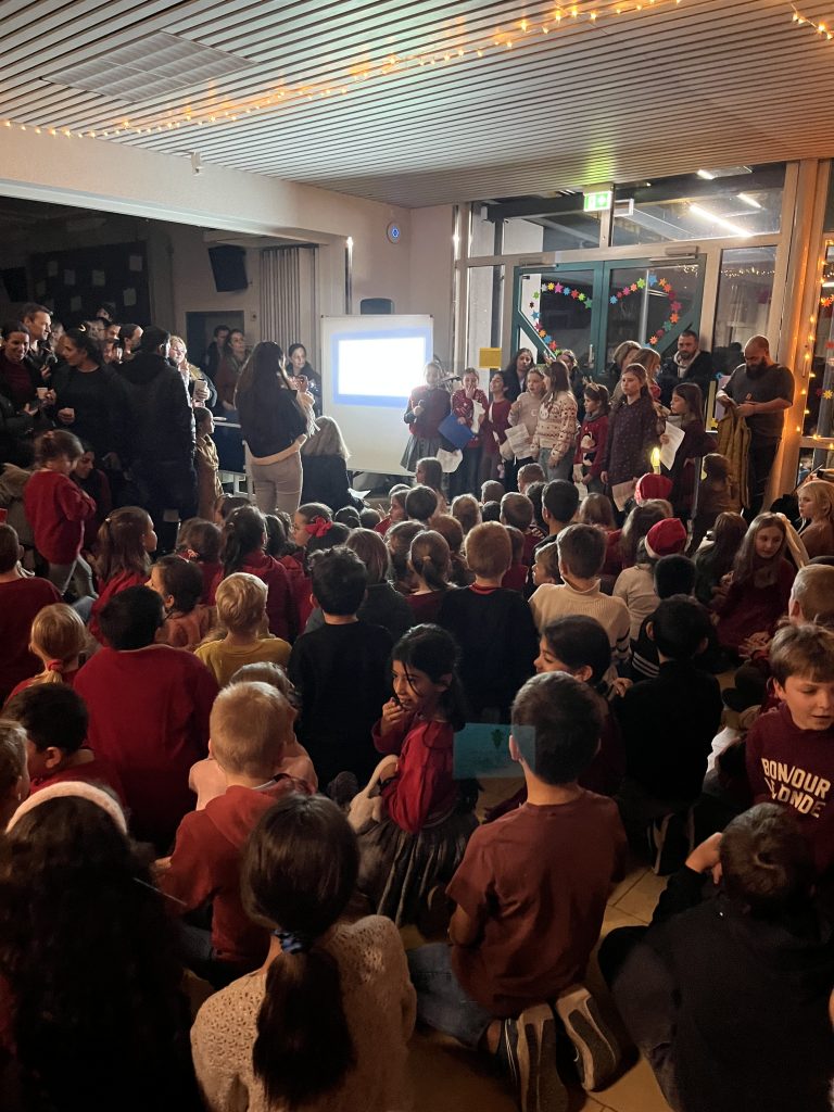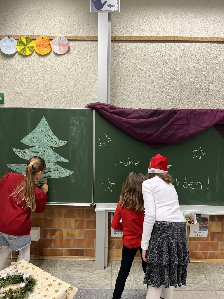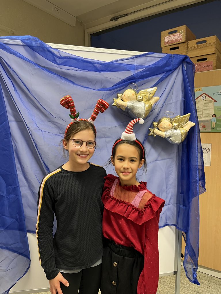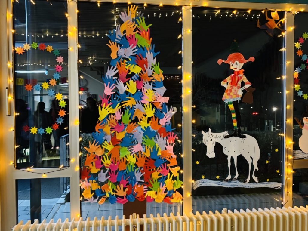 Kurz nach 17.30Uhr wurde es noch quirliger und die Kinder machten sich bereit für das „Hoffenheimer Pippi Langstrumpf Weihnachtslied“. Nach der fröhlichen musikalischen Einstimmung staunten dann alle über das tolle Fensterbild. Die passende Geschichte lasen unsere Viertklässlerinnen gekonnt vor und schafften es, dass es zumindest für eine kurze Zeit sehr ruhig wurde.